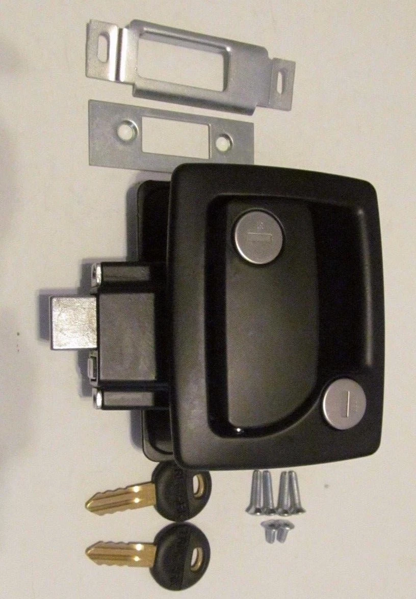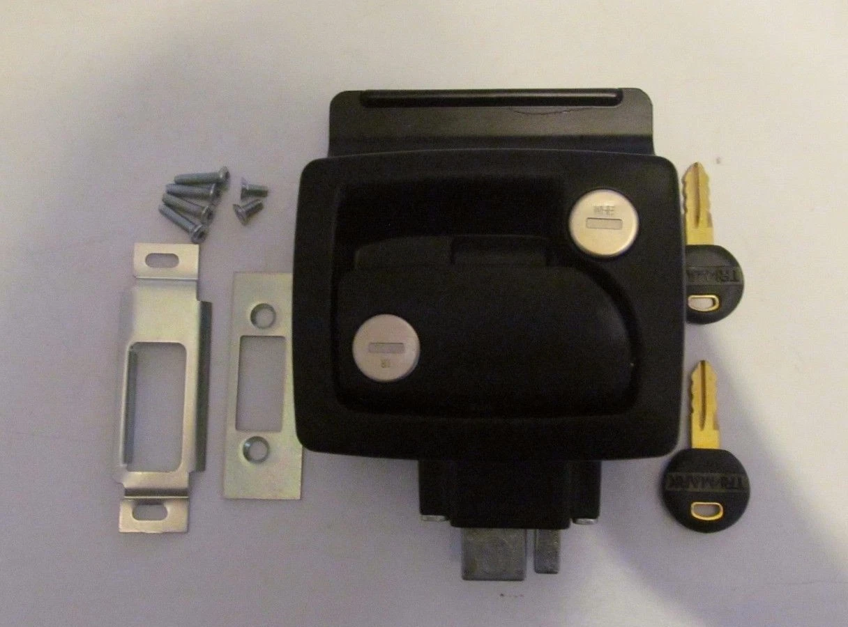 TriMark 060-0251 BLACK RV Trailer Entry Door Latch Deadbolt Handle Lock Keys Kit